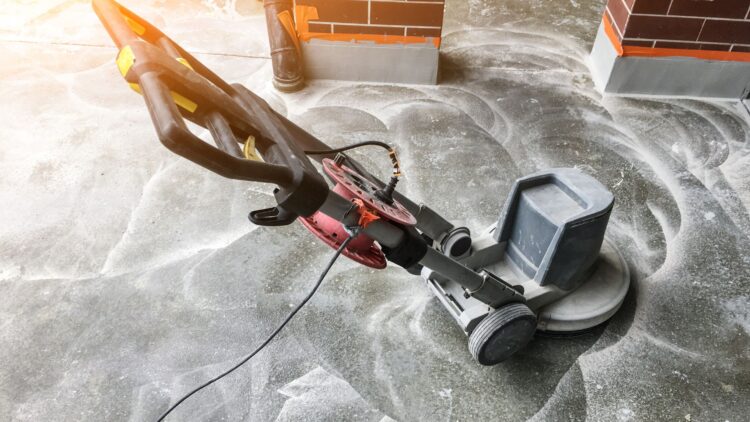 During mechanical surface preparation, we use grinding or shot blasting methods. Grinding involves floor polishing and grinding machines with spinning abrasive pads. These pads can remove old concrete sealing, coatings, and adhesives. They can also scratch existing textures and patterns on the floor.